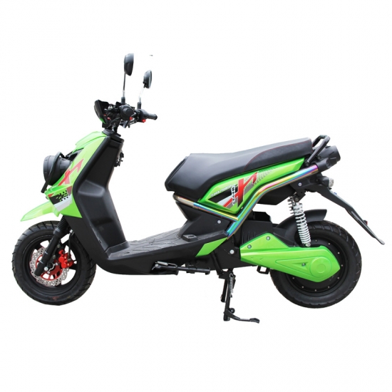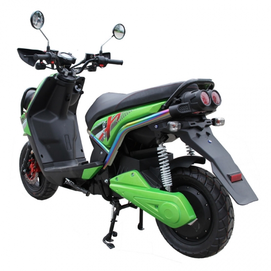 XTM-ES054 2 wheel scooter electric with a 1500W motor and 72v 20Ah battery, that produces enough power to carry upwards of 110 kg. Range of 55 km. Top speed of 60 km/h. The front and rear disc brakes will be more safely for you.
