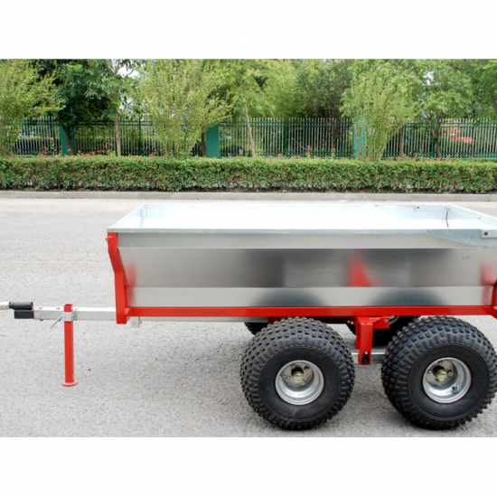 XTM OD-12 hydraulic pump tipping ATV Garden trailer with heavy duty but light weight, wide flotation tyres and high ground clearance for off road use. OD-12 special equipped with external electro-hydraulic pump, gives you a more easy tipping.