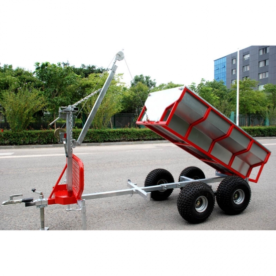 XTM-OT02 as a atv timber trailer, it’s very easy and effective to load and transport woods with a crane on it. side stabilizers keep the trailer stable when loading or unloading with the boom lift.