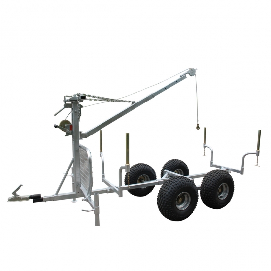 XTM-OT02 as a atv timber trailer, it’s very easy and effective to load and transport woods with a crane on it. side stabilizers keep the trailer stable when loading or unloading with the boom lift.